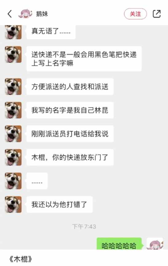 你在快递员心里的名字。