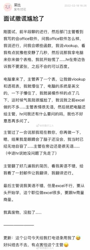 面试撒谎尴尬了。