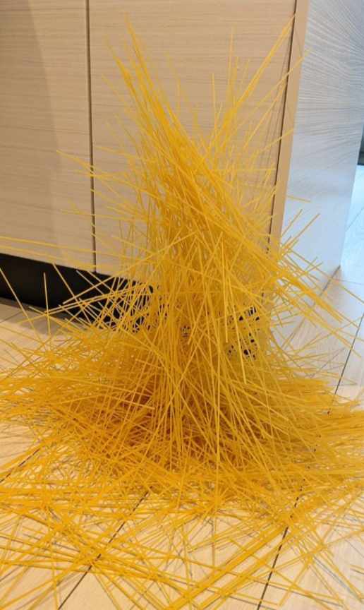 把五公斤的意大利面掉到地板上后,