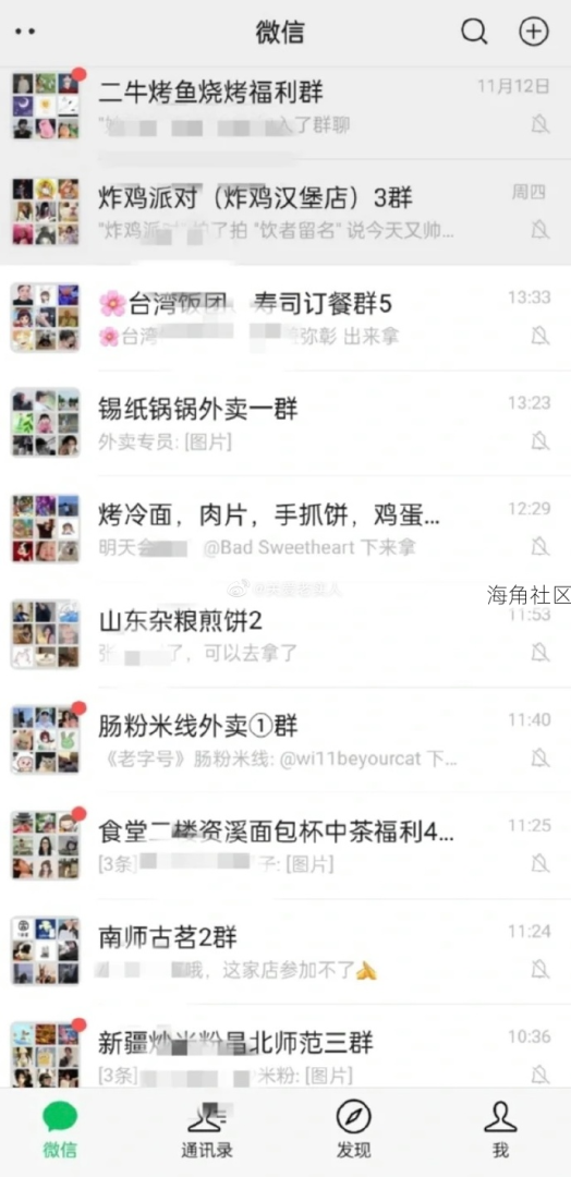 当代大学生的微信。