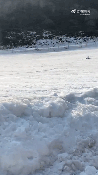 人和滑雪鞋各玩各的。