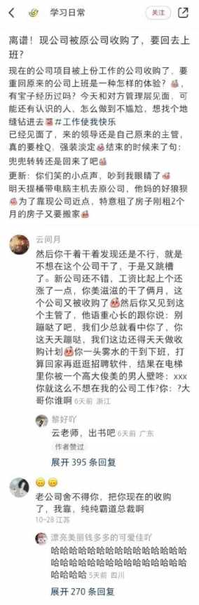 现公司被前公司给收购了,