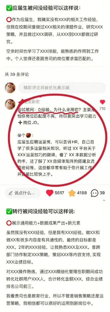 面试被问到没有经验咋回答。