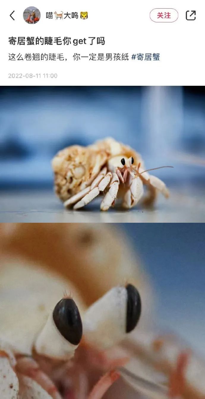 原来寄居蟹真的有睫毛。