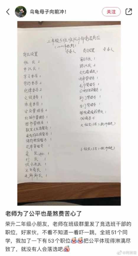 班里每个人都当上了班干部。