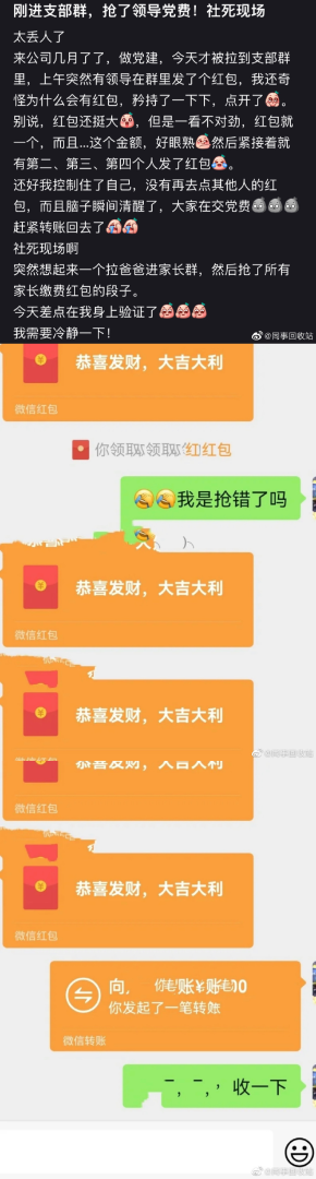 进群把老板发的党费红包抢了。
