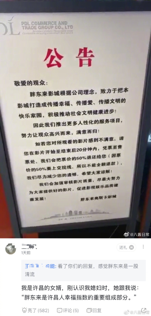 胖东来电影看完不满意可以退一半票钱。