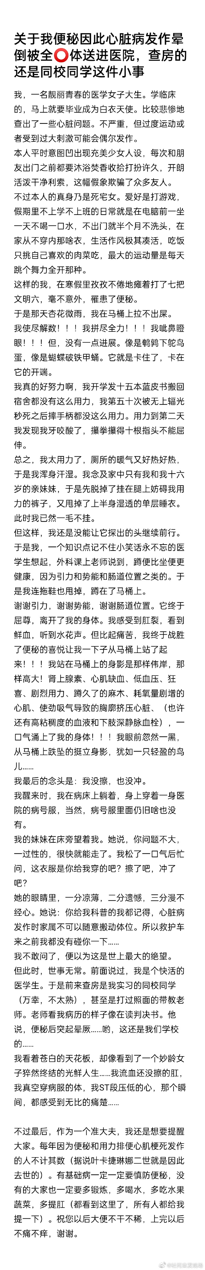 关于我便秘导致心脏病发作,