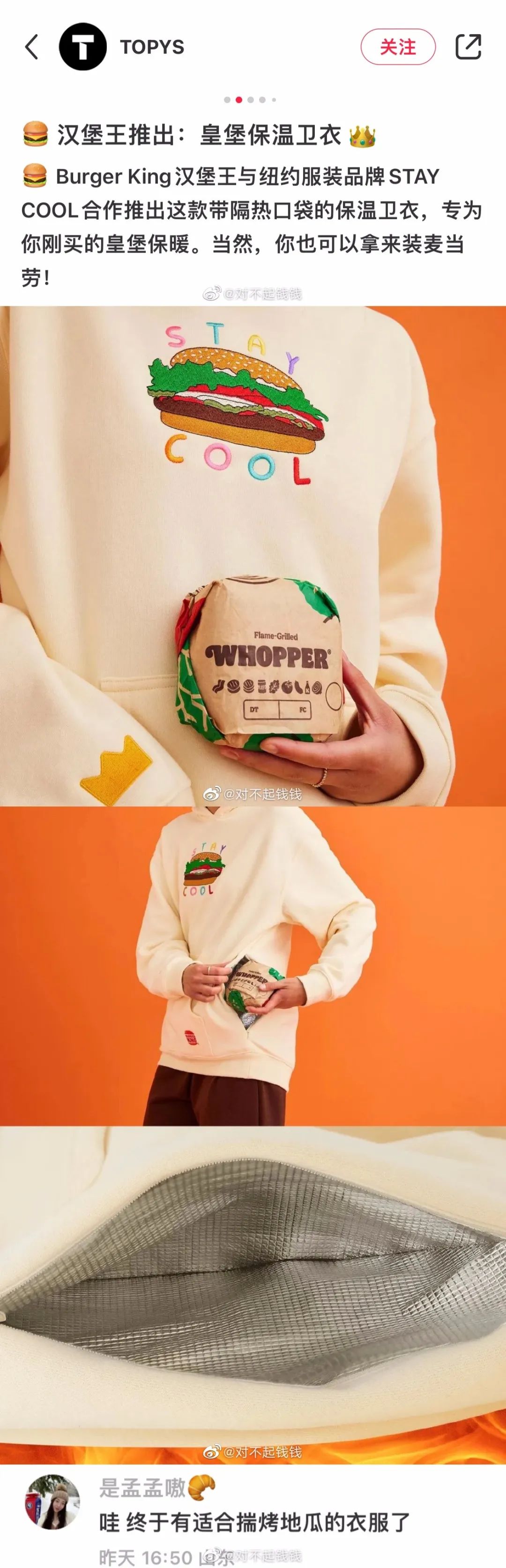 能保温食物的卫衣。