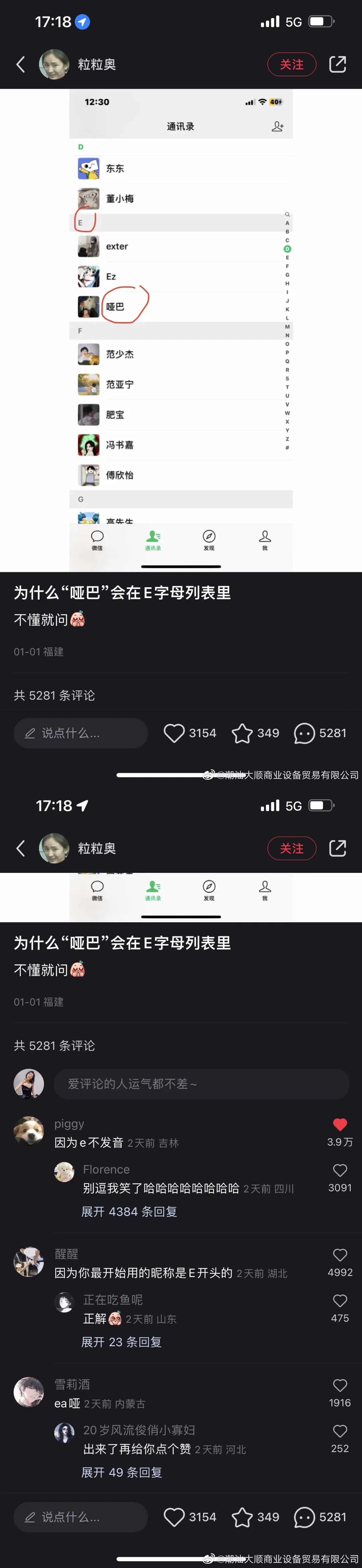 为什么“哑巴”会在E字母列表。