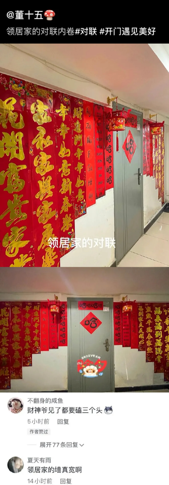 第一次见这样贴对联的。