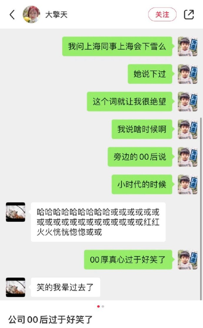 00后同事对下雪的描述。