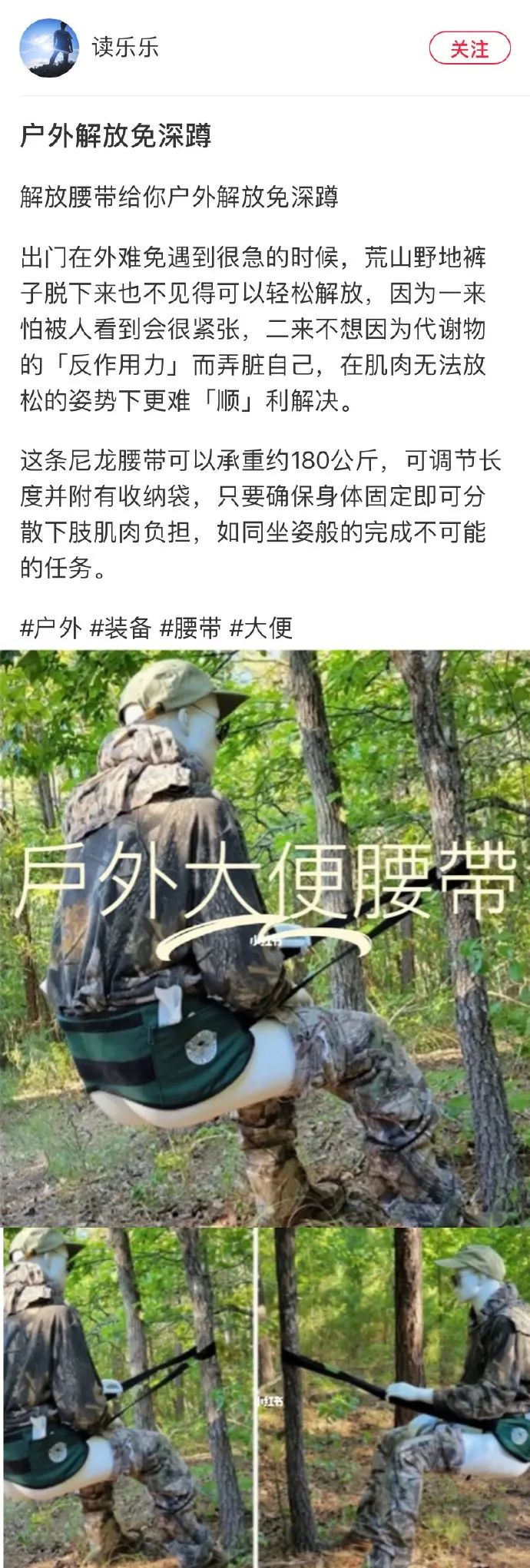 户外大便腰带。