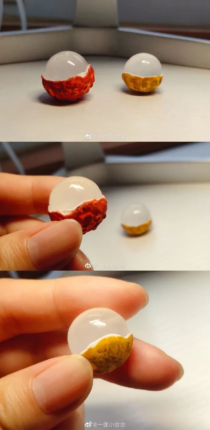 网友用黏土做的荔枝和桂圆。