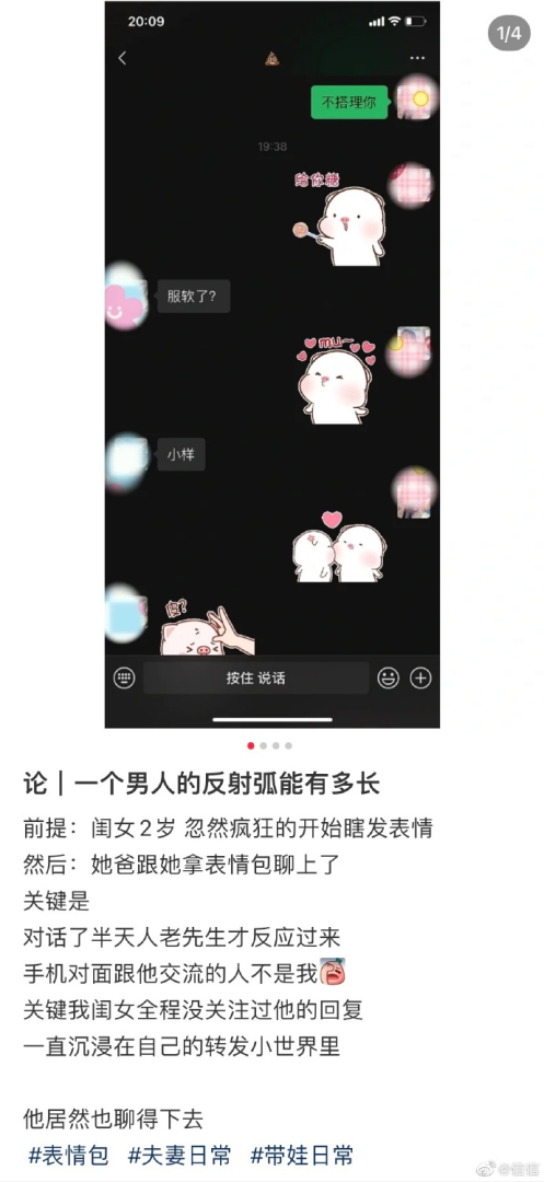 然后:她爸跟她拿表情包聊上了。