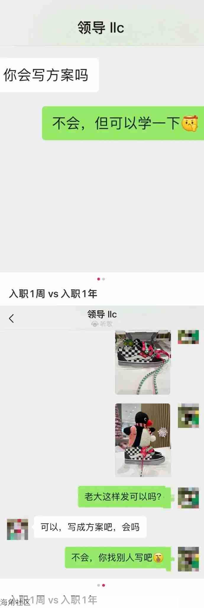 入职一周跟一年的对比。
