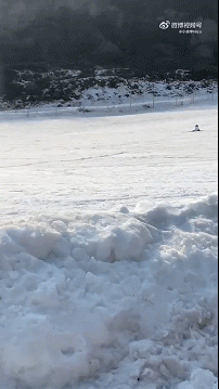 人和滑雪鞋各玩各的。