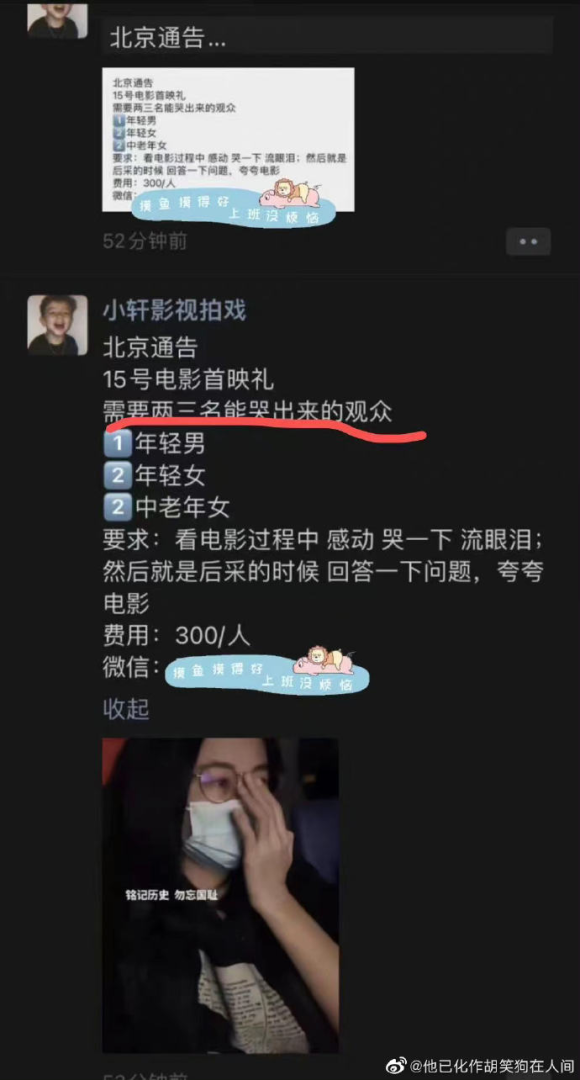 需要两三名能哭出来的观众。