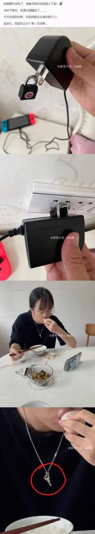 游戏机充电器被女朋友上了锁。