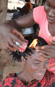中间缝隙上的头发,都被火烧没了?