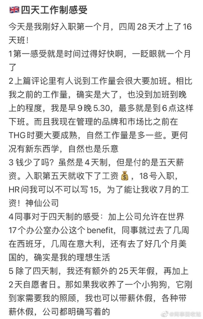 四天工作制的感受。